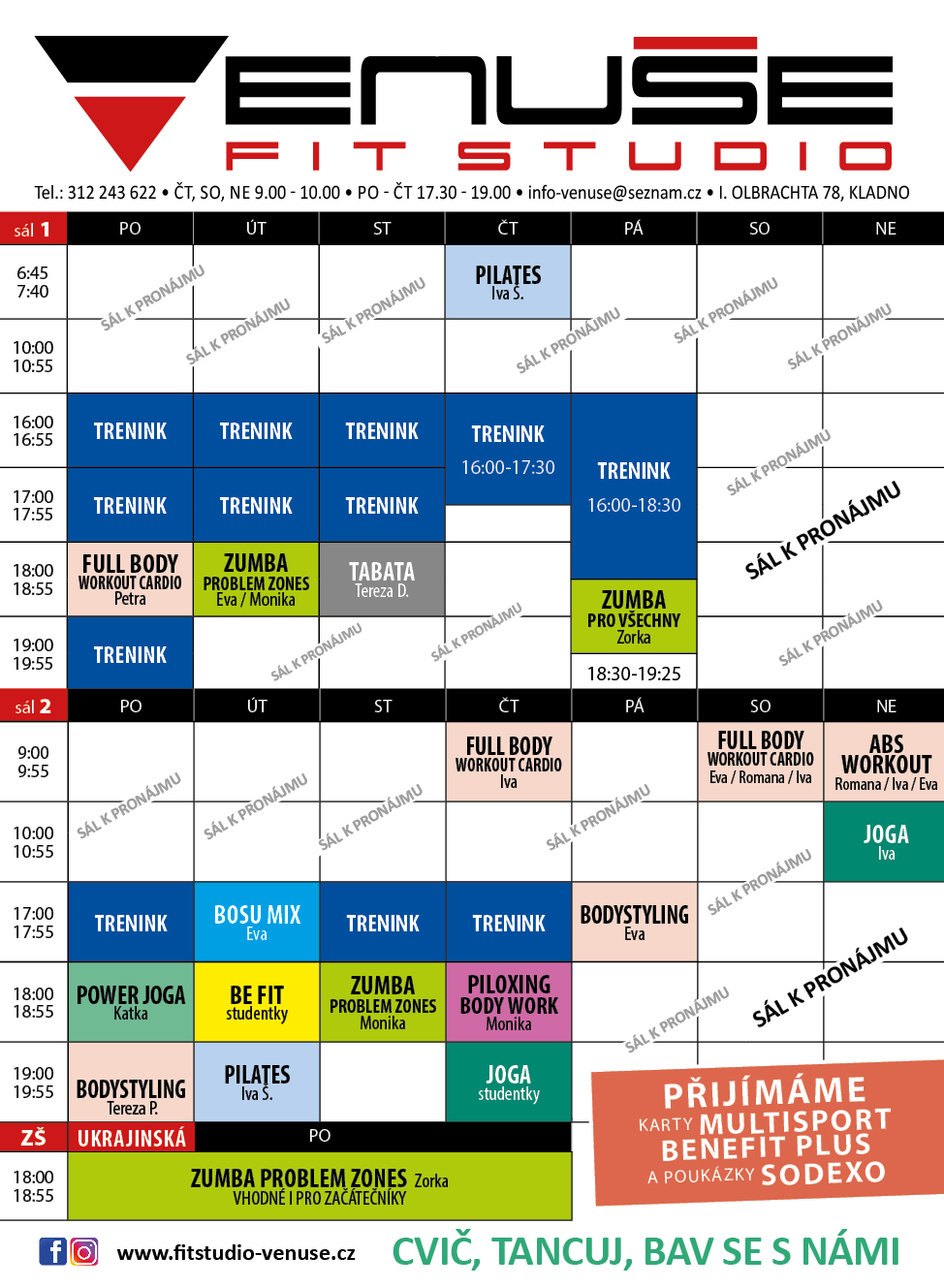 Po: 15:30-19:00, Út: X:XX - XX:XX a 15:15 - 19:00, St: 16:15-19:00, Čt: 8:45-10:00 a 15:15-19:00, Pá: 15:15-19:00, So: 8:45-10:00, Ne: 8:45-11:00